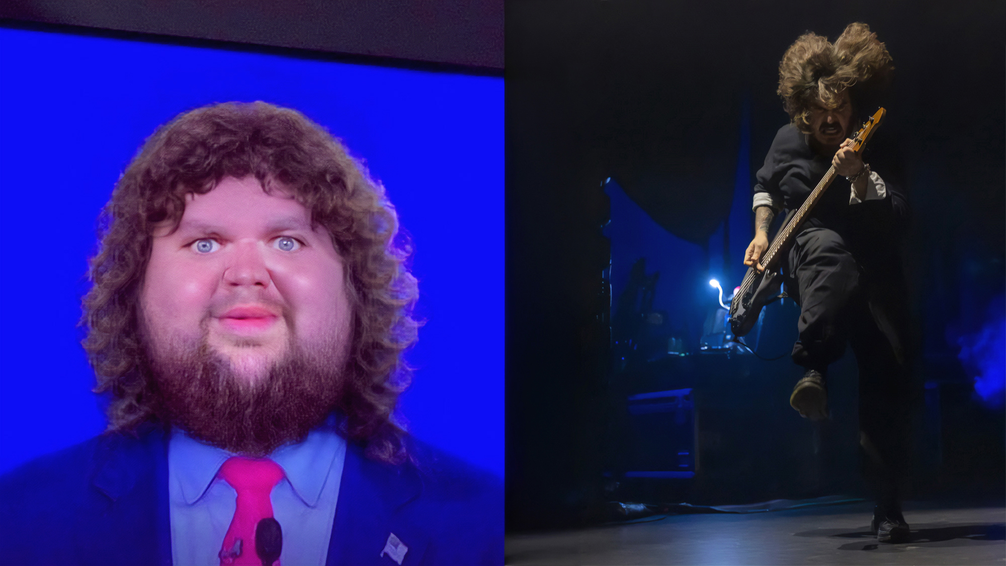 Nonetheless, one thing gave me a good chuckle: it was none other than the bassist, who looked like Jack Black had an enraged baby with the bloated JD Vance meme.